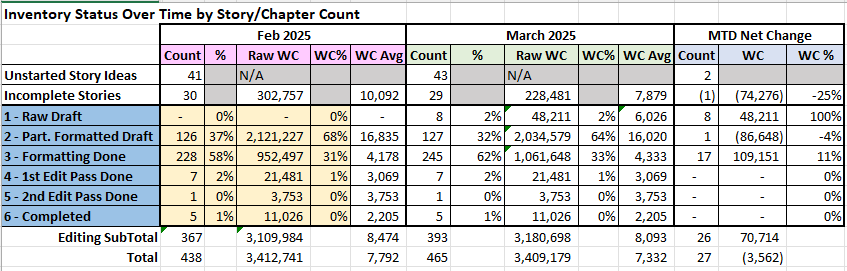 Below are some story count metrics on where my story backlog stood at the end of March month.